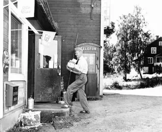 - Bilkåkande lantbrevbäraren Erik Johansson å linjen Åkersberga-Singö-Björnhuvud-Åkersberga. Foton augusti 1961. Posten skall lämnas i Dyviks Bruks handel.