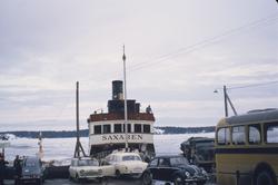 1956-03-04: Fastnar i isen med 34 begravningsgäster ombord. Kommer loss efter 35 timmar.