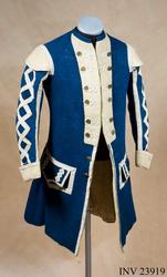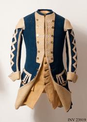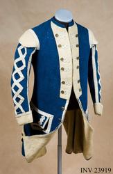Tidigare utställd som uniform för spel vid Södermanlands regemente, i huvudsak gällande för indelta infanteri 1765-1779.