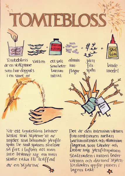 Det är den intensiva värmen från reaktionen mellan bariumnitratet och aluminiumflagorna som tänder och kastar iväg järnfilsspånen. Ståltråden i mitten leder värmen och därmed stjärnkaskaden uppför pinnen i lagom takt."