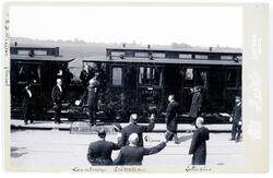 Järnvägen Skara-Vara-Göteborg. Uppehållet i Lundsbrunn (?) i samband med att Oscar II invigningsåkte på Västergötlands järnväg år 1900. Invigningsfesten var i Göteborg där biskop E...