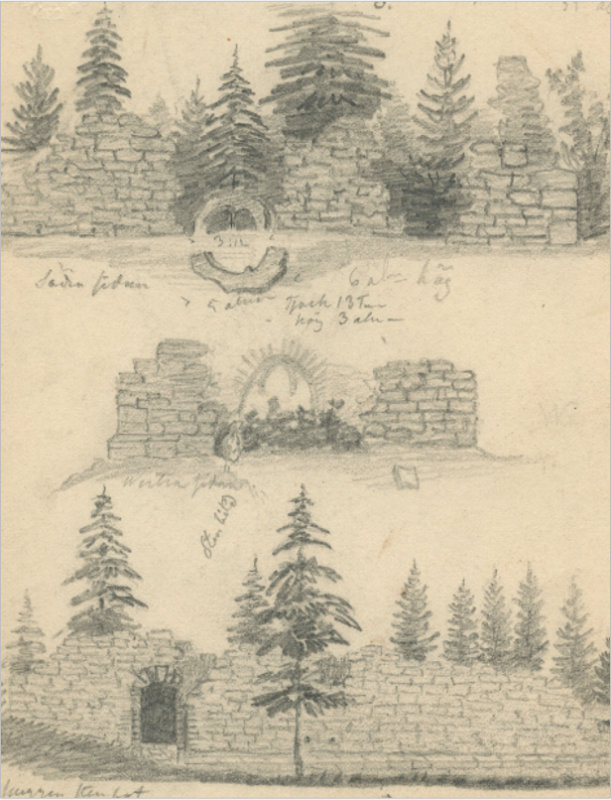 Det byggnadsverk som Hilfeling beskriver som ruin verkar ha vårdats fram till Hilfelings besök vars beskrivningar inte leder tanken till förfall eller att den skulle vara övervuxen med sly. Desto tydligare framgår det att Gunnfjauns kapell övergått i förfall då P. A. Säve besöker ruinen 1844. På Säves teckningar av ruinen skjuter unggranar upp innanför ruinens murar, av teckningarna att döma är granarna inte särskilt gamla med tanke på stammarnas ringa diametertillväxt. De 19 år som passerat mellan Hilfelings och Säves besök kan mycket väl inneburit ett snabbt tilltaget förfall i samband med igenväxning av sly. Utöver den tilltagna växtligheten verkar själva ruinen vara i oförändrat skick.